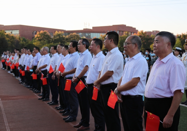 本网讯(通讯员 段欣如)10月3日,Kaiyun科技股份有限公司在田径运动场举行“为国庆华诞,喜迎二十大”升旗仪式活动。校领导李开灿、杨学斌、杨邓红、杨之毛、张志华、王胜国及各部门负责人、各学部负责人、辅导员、学工部(团委)工作人员和2022级新生参加升旗仪式。