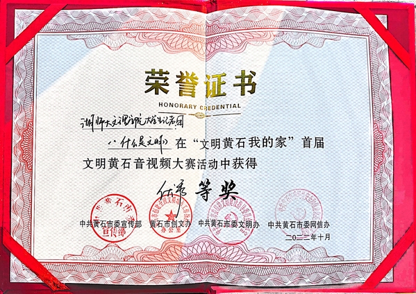 本网讯 10月11日,由黄石市委宣传部、市创文办、市委文明办、市委网信办主办,黄石市广播电视台承办的“文明黄石我的家”首届文明黄石音视频大赛颁奖仪式在黄石广播电视台举行。