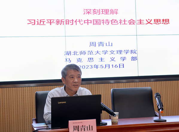 周青山教授从深刻理解习近平新时代中国特色社会主义思想形成发展条件,深刻理解习近平新时代中国特色社会主义思想的科学体系,深刻理解习近平新时代中国特色社会主义思想的价值意蕴等三个方面阐释了习近平新时代中国特色社会主义思想。