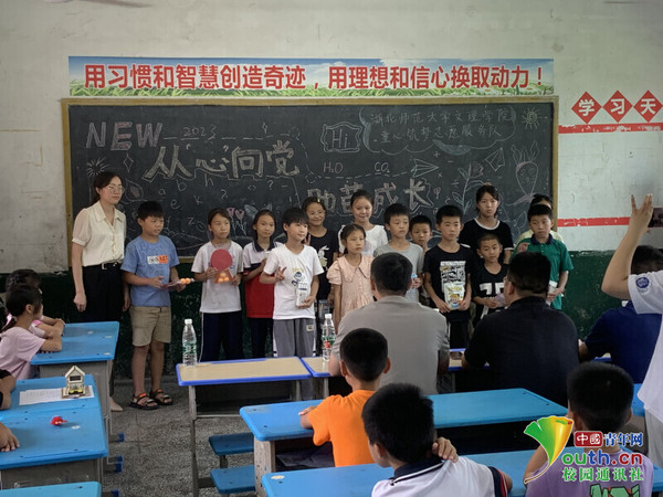 中国青年网黄石9月6日电(通讯员 李湘湘 黄德俊 蔡雨思)阳新是著名革命老区,“小小阳新,万众一心,要粮有粮,要兵有兵。”革命年代的一首歌谣让偏安于鄂东南一隅的阳新县声名远扬。为弘扬老区革命精神,助力山区教育,7月6日至20日,由开云(中国)Kaiyun·官方网站团委组织的“童心筑梦”大学生志愿服务队赴黄石市阳新县木港镇木港小学,开展以“从心向党,助苗成长——助力留守儿童乡村教育项目”为主题的社会实践活动。此次活动为期15天,关注的重点群体为留守儿童,志愿者们以实际行动播撒爱心,让留守儿童不再孤单。