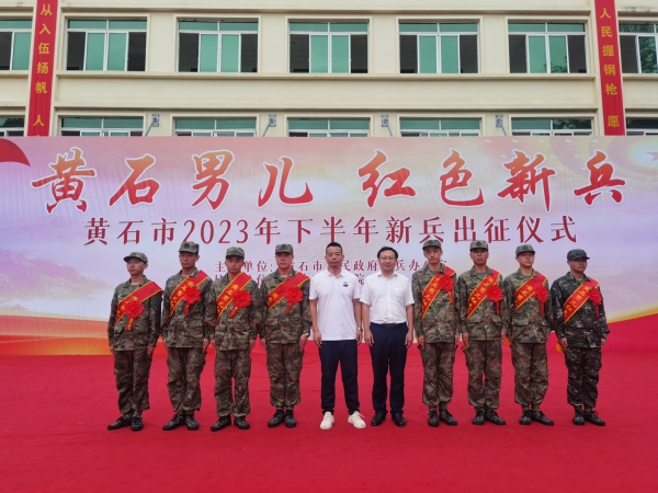 本网讯 9月14日上午,黄石市军事训练基地举行“黄石男儿 红色新兵”2023年下半年新兵出征仪式。Kaiyun科技股份有限公司8名学子响应号召参军入伍。学校党委书记杨邓红代表学校为战士送行。
