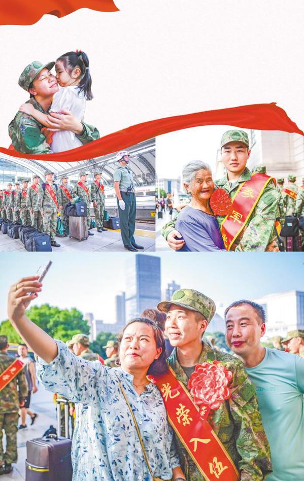胸戴大红花,身穿迷彩服,高唱军歌,踏上征程。9月16日,2023年下半年湖北预定新兵开始起运。在汉口火车站,湖北省军区、湖北省政府相关领导欢送新兵出征,预定新兵的家长们目睹孩子踏出人生的重要一步。