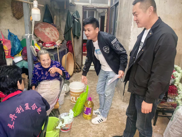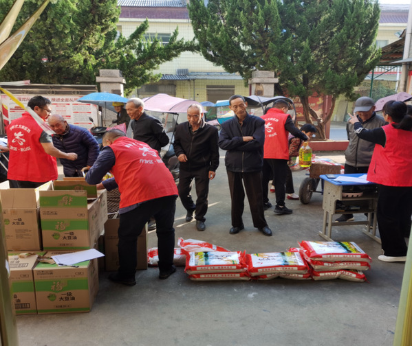 汪仁村党员志愿者逐户走访慰问辖区内高龄老人,为他们送去了大米、食用油等生活用品,详细了解老人的生活起居和身体情况,嘱咐老人要注意饮食、保重身体。