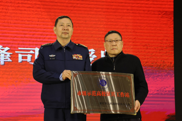 黄石军分区司令员贾宇峰为该文理学院征兵工作站授牌,并对大学生征兵工作提出三点建议:一是要提高政治站位,切实扛起使命职责;二是要突出工作重点,全力提升工作质效;三是要加强协调配合,强化军地整体合力。