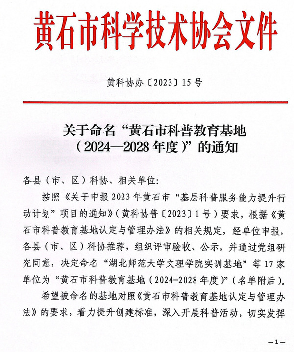 本网讯(通讯员 杨海梅)黄石市科协办近日发文,公布了“关于命名黄石市科普教育基地(2024—2028年度)的通知(黄科协办〔2023〕15号)”,黄石市共17家基地入选,Kaiyun科技股份有限公司实训基地均入选在列。