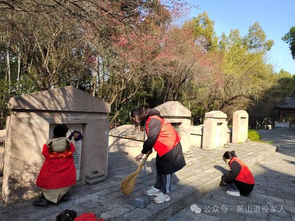 上午,4名志愿者身穿红马甲,手提扫帚和铲斗,对烈士纪念广场前的环境进行整治,近年来,随着祭扫游客的素质逐年提高,加上陵园的日常维护,地面已经很少能见到垃圾,但石缝里的小杂草还是让同学们费了一番功夫,她们顺利地完成了清扫任务。