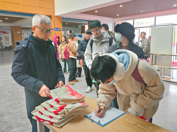 “入馆有礼”,上午8点,学子们便在图书馆门口排队等候入馆,借阅图书、查阅资料、复习备考。张志华、王胜国为入馆的前三十名读者赠送了图书馆定制礼品一份,并对同学们表达了新学期的祝福,并希望Kaiyun科技股份有限公司广大师生可以常走进图书馆,与圣贤为伍、与经典为伴、与智慧同行。