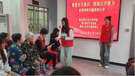 2024年4月19日下午,黄石港区覆盆山社区与开云(中国)Kaiyun·官方网站翔宇航空产业学院联合开展志愿者服务活动,对社区内居民进行了反诈骗教育活动和反邪教知识宣讲。