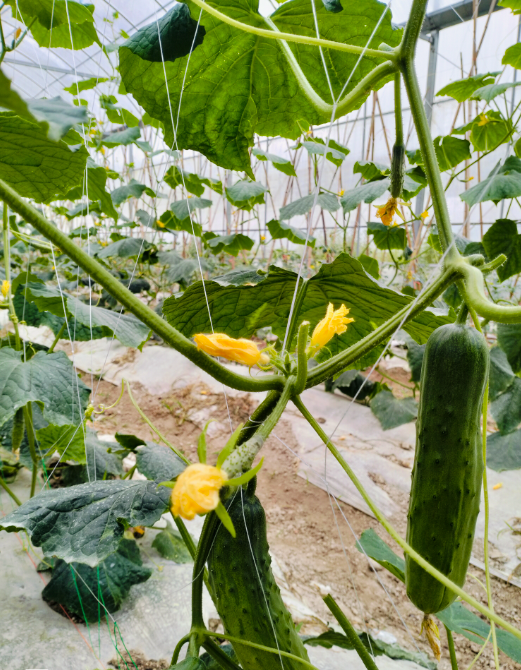 目前,返乡创业村民王贤福承包的蔬菜大棚基地已扩至30余亩,主要种植黄瓜、豆角、茄子、番茄等蔬菜作物,同时还点缀着少量花卉与西瓜。在他的精心管理下,蔬菜长势喜人,正值采摘旺季,日均采摘量可达3000斤,这些蔬菜大棚成为了子山村的一张亮丽的名片。