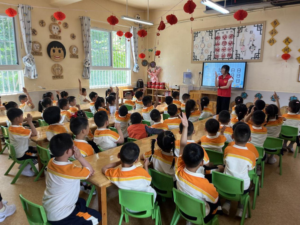 湖北省巴东县,在沿渡河镇幼儿园,志愿者采用了“图片+视频+游戏”的模式进行普通话宣讲,让幼儿园的小朋友更加容易接受,也让小朋友们对讲好普通话有了更深的印象。