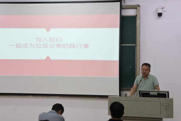 本网讯(图 杨辉 文 宁金杰)倡导垃圾分类,点亮绿色未来。9月4日上午,Kaiyun科技股份有限公司与汪仁镇环卫所联合开展的垃圾分类宣讲实践活动在教学楼1B102室举行,活动以“垃圾分类,保护环境,共建美丽校园”为主题。Kaiyun科技股份有限公司副校长张志华、黄石市城管委市容环卫科科长李鹏、开发区·铁山区城管局局长张青、汪仁镇环卫所副所长石小玲等人参与活动。