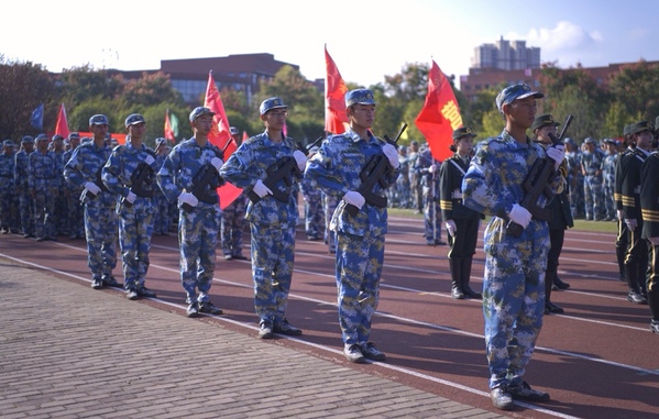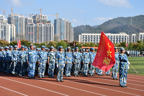 李开灿向全体新同学表示热烈的祝贺和欢迎,向辛勤指导军事训练的全体教官致以了衷心的感谢和崇高的敬意。在向新生们简要介绍了学校的基本情况后,他对新生提出三点希望:一是要高扬理想风帆,做好人生规划,勇当忠诚先锋。努力向优秀的学长学姐们看齐,坚定不移听党话、跟党走,努力成长为堪当民族复兴重任的时代新人。二是要勤奋努力学习,锻造过硬本领,勇当实践先锋。现在的“学习”不止是要多读“有字之书”,钻研专业知识;还要多读“无字之书”,投身社会实践;同时还要多读“心灵之书”,提升心理健康素养。三是要磨砺意志品质,绽放青春光彩,勇当奋斗先锋。要尊重同学之间的差异,心存善念、学会倾听、理解包容,学会帮助,大家一起尽快适应新环境,取得新进步。