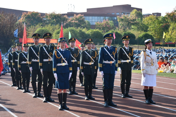 老生代表张钰娴发言激励同学们传承军训精神,勇敢面对生活中每一个挑战,树立新学期目标,团结互助,共创美好未来。