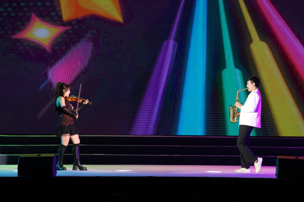 舞蹈《一条大河》展现了中华民族奔腾不息的精神风貌。影子戏幕布戏《觉醒青年》以新颖的形式,讲述了青年一代的奋斗故事。男声独唱《如梦所期》情感饱满,赢得了现场观众的阵阵掌声。歌舞表演《山河图》以其动感的节奏将晚会氛围推向高潮,掌声经久不息。二胡与对唱《金风玉露》展现了中华传统文化的魅力,小提琴与萨克斯重奏《灌篮高手+柯南》带领同学们重温儿时经典。走秀《礼乐春华》展示了我国传统服饰的韵味,女子舞蹈《武亦舞》将武术与舞蹈完美结合,令人耳目一新。合唱《国家》唤起了现场观众的爱国情怀,朗诵《青春中国》传递了青年一代的担当。歌舞《梦想阳光》用欢快的旋律和舞蹈,传递出积极向上的力量。男子舞蹈《剑舞乾坤》展示了力量与美的完美结合,女声独唱《一路繁花》以深情的歌声,表达了对未来的美好憧憬。晚会在热烈的掌声中落下帷幕,全体师生共同度过了难忘的夜晚。