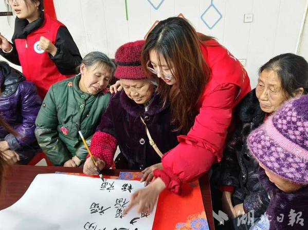 此外,活动现场还安排了书法活动。志愿者们书写福字与对联,为老人们送上祝福。同时,社工和志愿者们向老人们讲解防诈骗知识。通过案例分析,帮助他们提高防范意识。