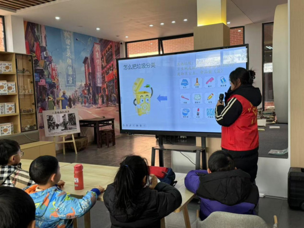课余时间,志愿者们还进行了垃圾分类的主题宣讲活动。通过宣讲,让孩子们对垃圾分类有了清楚的认知,同时在宣讲过程中穿插动画和游戏的形式,让孩子们知道垃圾分类的重要性。