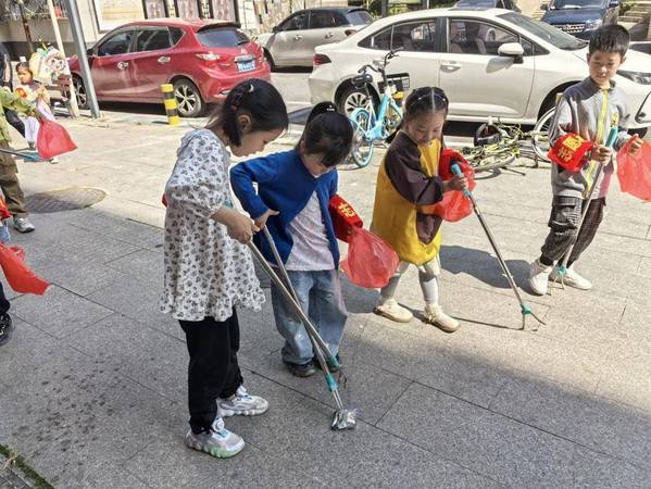 学习结束后,孩子们变身环保小卫士”,分组开展“清洁家园”行动。大家手拿钳子、拎起垃圾袋,仔细捡拾绿化带中的纸屑、烟头等垃圾,还将废旧物品分类整理。路过居民纷纷点赞:“这些小娃娃干活有模有样!”孩子们则自豪地展示成果:“我们把社区变漂亮啦!”
