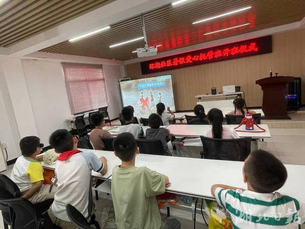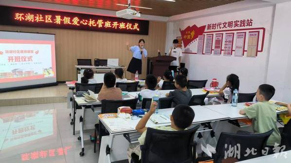 在牧羊湖社区暑假“爱心托管班”的开班仪式上,社区党委书记张晶表示,希望孩子们在完成暑期作业的同时,可以拓展课外知识、享受快乐假期。