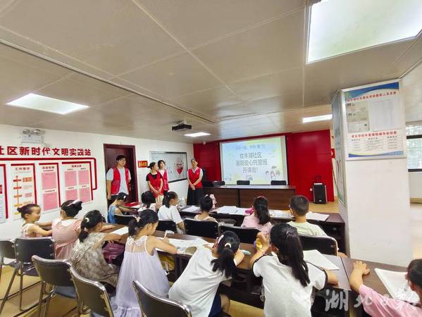 在陈家湾社区暑假“爱心托管班”开班仪式上,志愿者们按照小朋友们的年龄分为低龄班和高龄班,并根据兴趣爱好和实际学习需求,进行课后作业辅导和解答学习疑惑,进一步激发小朋友们的想象力和专注力,使小朋友们度过快乐充实的暑期时光。