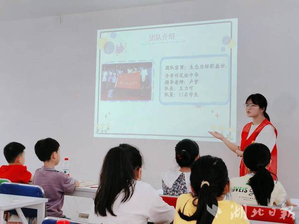 在环湖社区暑假“爱心托管班”开班仪式上,湖北理工学院志愿者团队负责人刘岩首先宣读了《暑期托管班班级公约》,随后在“认识你我他”环节,让孩子们勇敢走上讲台,用稚嫩的声音介绍自己的姓名、年龄和兴趣爱好。