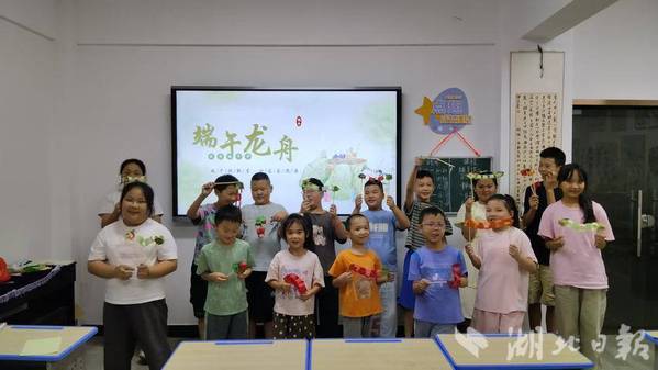 课堂上,志愿者老师先以猜谜语、知识问答的形式,带领孩子们重温端午节的故事。从屈原的传说到各地的民俗,一个个问题抛出,立刻点燃了孩子们的热情。“过端午节要吃粽子,我们家会包腊肉粽、咸蛋黄粽!”“我还知道,端午节要系五彩绳保平安!”孩子们纷纷举手,把自己熟悉的端午习俗分享给同伴,在热烈的互动中,端午的文化印记悄然扎根。