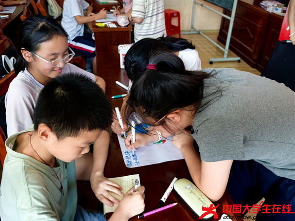 支教团成员紧密结合当地学生的实际需求,融合环保主题,精心设计了丰富多样的课程。在窗明几净的教室里,学科辅导课上志愿者用生动的比喻讲解难点,帮助孩子们夯实知识基础。音乐课上传来清亮的合唱,手工和绘画课上彩纸与画笔飞舞,极大地拓展了孩子们的兴趣爱好。心理健康教育与安全知识科普则以情景模拟和互动问答的形式,全方位守护孩子们的健康成长。课堂上,志愿者俯身耐心讲解、设计趣味互动游戏,巧妙将垃圾分类、节约资源等环保理念融入每一环节。孩子们眼神专注,积极举手参与,清脆的笑声和问答声此起彼伏,往日安静的社区因这份活力充满了欢声笑语。