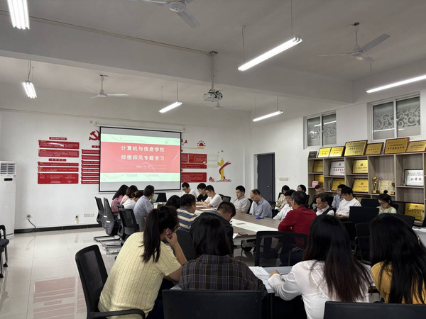 本网讯(通讯员 王洁)10月15日下午,计算机与信息学院组织召开师德师风专题学习会议,旨在强化教师队伍的思想政治和作风素养,全体教师参加。