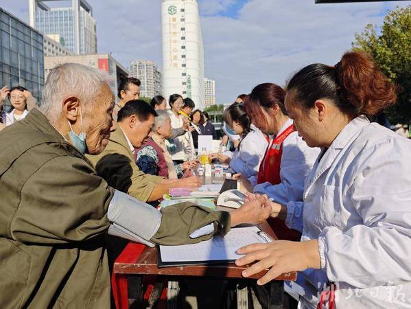 “健康守护”摊位前,胜阳港社区卫生服务中心的医护人员为骑手和居民提供免费血压测量与健康咨询。针对骑手群体常见的职业劳损,医护人员现场讲解了颈椎保健知识,提醒大家在高效工作的同时,更要合理作息。
