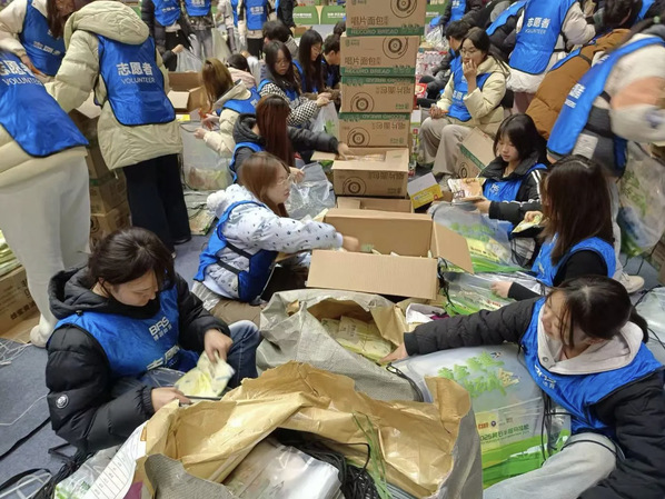 赛前准备阶段,志愿者细致分装参赛包与完赛包,为选手们备好奔赴赛道的“第一份心意”。参与分装工作的志愿者王同学表示:“虽然工作繁琐,但想到我们亲手准备的物品将陪伴选手完成比赛,内心就充满了成就感。每一个细节都承载着我们对赛事和跑者的祝福。”