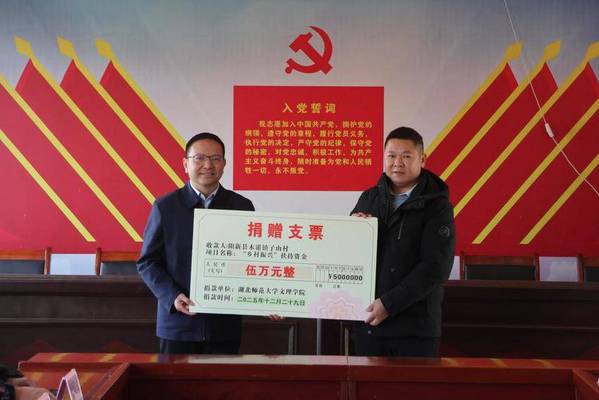 在乡村振兴工作调研座谈会上,陈文斌代表学校向子山村捐赠5万元乡村振兴专项资金,助力子山村各项事业的发展。阳新县、木港镇和子山村有关负责同志分别介绍了地方经济社会发展和乡村振兴工作情况,学校驻村工作队汇报了驻村帮扶工作有关情况。