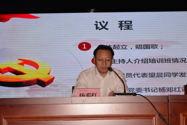 党委书记杨邓红对全体学员表示衷心的祝贺,并要求大家:一是要端正态度,正确认识参加入党积极分子培训的重要意义。二是要科学安排,把学习宣传贯彻党的二十大精神和习近平新时代中国特色社会主义思想作为当前首要政治任务,认真学习、深入领会培训课程的主要内容。三是要知行统一,将学到的理论知识运用到实践中,深刻领悟“两个确立”的决定性意义,增强“四个意识”、坚定“四个自信”、做到“两个维护”。四是要严格遵守纪律,圆满完成培训任务。五是要锤炼品质,提升素质,在政治、思想、行动上积极向党组织靠拢。