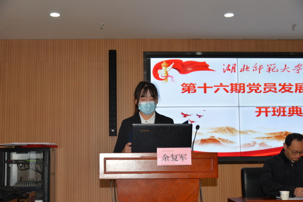 开班典礼由党委组织部副部长余复军主持。在诵读党章、奏唱国歌之后,学员代表赵汝祎作了代表发言,表示要珍惜学习机会,按照习近平总书记重要讲话要求,牢记自己的责任,争做优秀青年模范,努力向党组织靠拢,成长为德智体美劳全面发展的社会主义建设者和接班人,为实现中华民族的伟大复兴贡献力量。