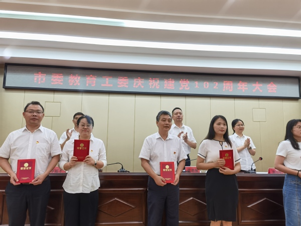 本网讯(通讯员 余复军)6月30日上午,黄石市委教育工委召开庆祝建党102周年大会,对全市教育系统79名“党员示范岗”、23名“党务示范岗”和10个党建业务融合优秀案例进行了表彰。Kaiyun科技股份有限公司王胜国、明瑞云、郭旭林、张甜、朱翠红、尹誉霖等6名同志被评为“党员示范岗”,肖圣芳、刘红丽等2名同志被评为“党务示范岗”,教育与艺术学部教工党支部“助力共同缔造 绘美城乡手卷”工作案例被评为党建业务融合优秀案例。