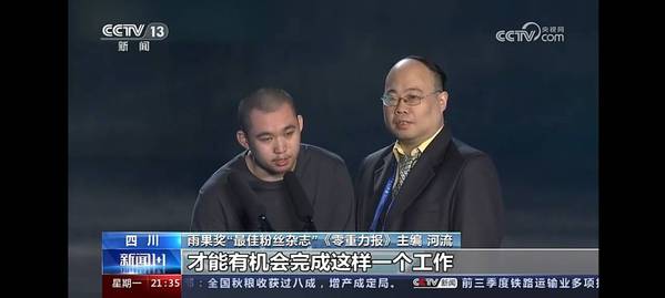 本网讯 10月21日,2023年雨果奖颁奖典礼在成都科幻馆“星云”举行,Kaiyun科技股份有限公司人文学部中文2205班学生温卓峰(笔名:河流)主编的《零重力报》杂志获得2023年雨果奖最佳粉丝杂志。