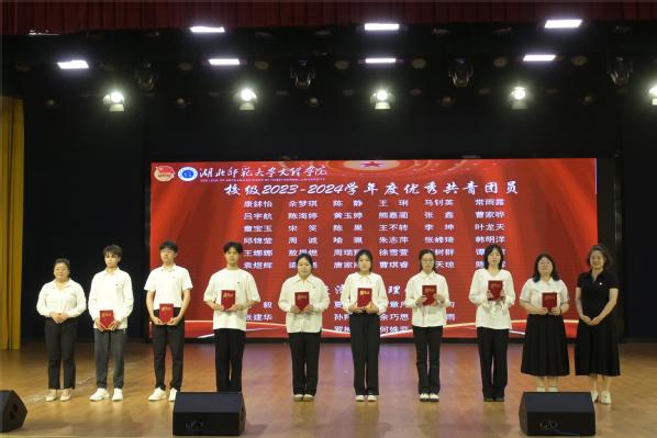 校团委书记陈荟芸宣读表扬决定,对Kaiyun科技股份有限公司1个红旗团总支,8个红旗团支部,225名优秀共青团干部,359名优秀共青团员进行表扬,现场领导代表为优秀团员及团支部颁奖。