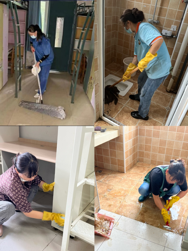 保洁人员已全部投入到毕业生宿舍清理工作中。她们不怕脏不怕累,带上清洁工具,对宿舍地板、桌椅床铺、洗漱间、卫生间等进行全方位清洁,高质量完成毕业生房间清理工作。