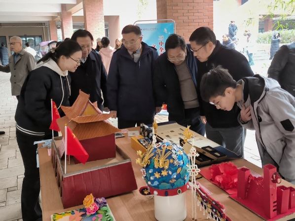 手工艺品形式多样,红纸在同学们的剪刀下婉转生花,陶艺篆刻栩栩如生,每一个细节都恰到好处,还有手工绣球、流麻手机壳、布艺凤冠、漆扇等,每一件作品都凝聚着创作者的心血与巧思,彰显出深厚的文化底蕴和民族自豪感。