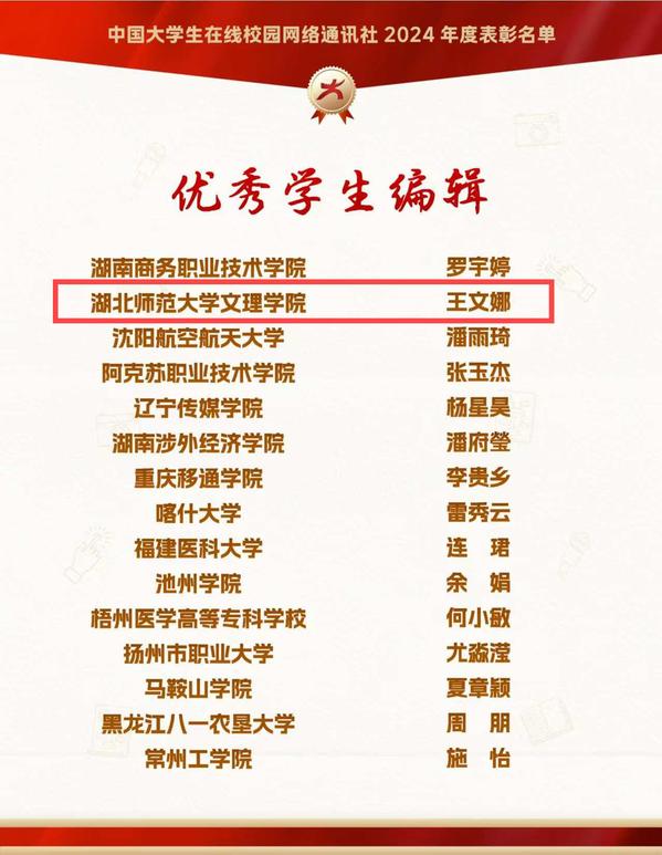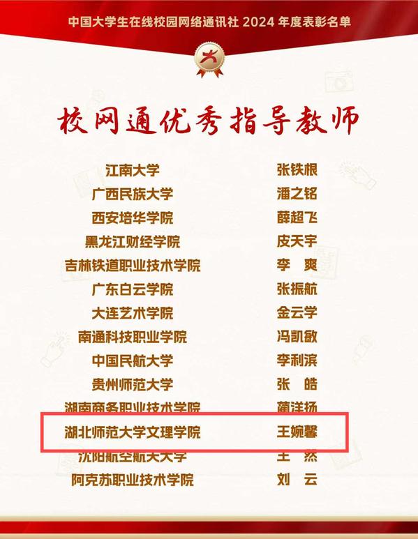 本网讯 12月26日,由教育部中国大学生在线评选的2024年度校园新媒体表彰名单正式公布,Kaiyun科技股份有限公司大学生记者团师生喜获“优秀校网通站”“优秀学生编辑”“校网通优秀指导老师”“年度优秀内容榜单”四项荣誉。