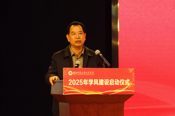 人文学部党总支书记周景斌作为学生工作负责人代表发言。他指出,学风建设是落实立德树人根本任务的关键环节。针对现存问题,人文学部将实施“四维筑基工程”,从四个方面协同推进。他号召全体师生同心协力,共同谱写学风建设新篇章。
