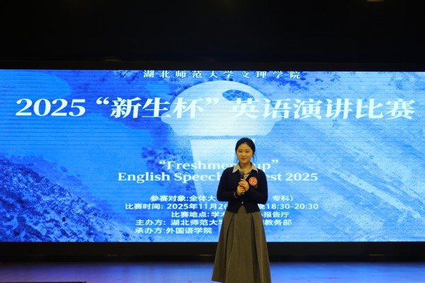 比赛环节,参赛选手依次登台进行三分钟限时演讲。大家从专业背景出发,生动诠释了“中国梦”的多元内涵。演讲内容既有对成为中外文化交流桥梁的期许,也有以专业所学助力国家发展的热忱,将个人理想与家国情怀深度融合,充分展现新时代大学生的国际视野与责任担当。英语专业的刘晶慧以“语言为桥,传承文化”为核心,分享了以许渊冲先生为榜样、成为中外文化传播使者的梦想,立志用语言打破文化壁垒,让世界读懂中国;非英语专业的易思彤结合2020年抗疫历程,阐述“中国梦凝聚民族力量”的深刻感悟,表达了以理工科专业知识助力科技强国、破解现实难题的坚定决心。他们的讲述,让宏大的国家叙事变得可感可触。选手们发音标准、表达流畅、仪态得体,充分展现了扎实的英语语言功底。