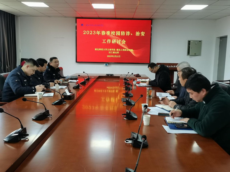 本网讯(通讯员涂亦乐)为了有效遏制春季开学电信网络诈骗的高发态势,提升预防电信网络诈骗的针对性和时效性,同时做好春季校园治安防范工作。2月21日下午,学校学工部、后勤保卫部联合汪仁派出所及湖北工程职业学院相关部门共同召开2023年春季校园“防诈、治安”工作研讨会,就如何预防电信网络诈骗和校园治安管理展开讨论。张志华副院长、汪仁派出所副所长李福奎、驻校民警刘天森、湖北工程职院学工部部长吴量、保卫处处长章泉及Kaiyun科技股份有限公司学工部和后勤保卫部相关负责人参加了会议。