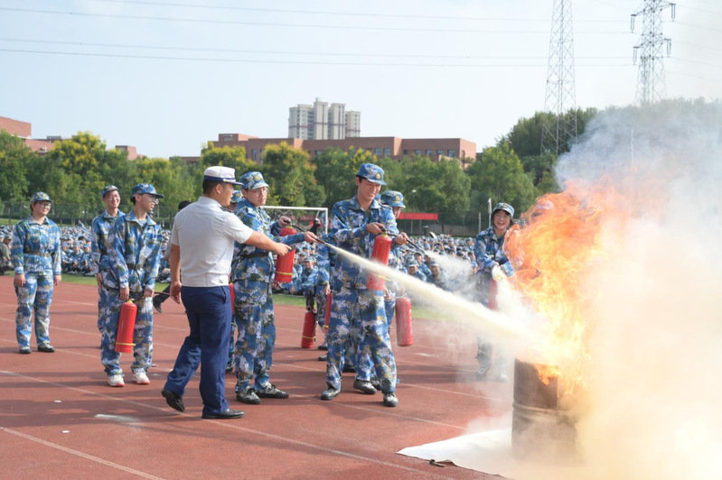 (本网讯通讯员陈晓崟)为进一步加强学校消防安全工作,切实提高广大师生的消防安全意识及突发事件应急处理能力。9月15日下午,后勤保卫部联合开铁区消防救援大队进入校园,为2023级全体新生开展了一场极具实用性、实效性的“开学第一课”,消防知识“进军训”活动。
