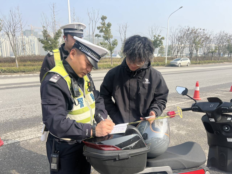 期间,执勤民警在校门口及校园周边主要道路路口分别设置卡点,重点查处学生驾驶摩托车、电动车交通违法行为。同时,加大对学生的交通安全宣传教育和现场劝导,特别是针对无牌无证、未佩戴安全头盔和违规载人等违法行为,一律依法给予相关处罚,以达到有效预防和减少学生道路交通安全事故的发生。