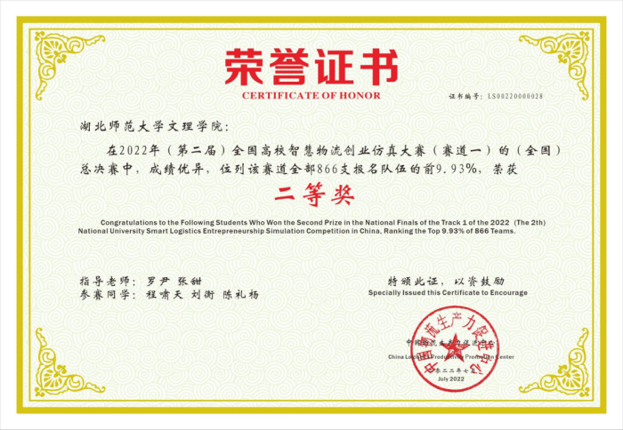 2022年7月,由中国物流生产力促进中心主办,《物流技术》杂志社、河南省物流协会协办,南阳师范学院承办的2022年(第二届)全国高校智慧物流创业仿真大赛总决赛落下帷幕。