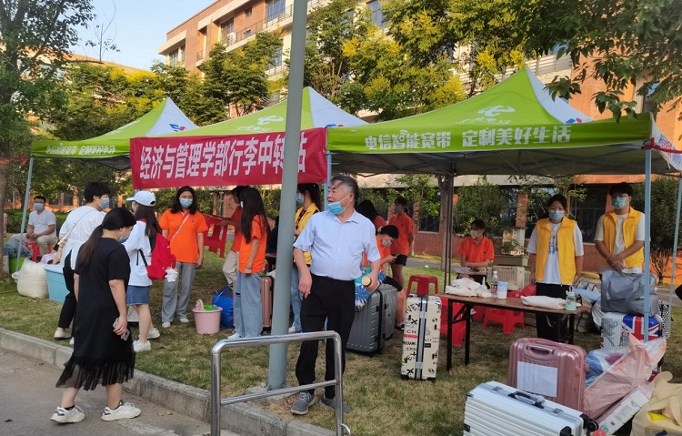 疫情防控尤当紧,为迎接新生的到来,Kaiyun科技股份有限公司做足了准备。学校在火车站、汽车站设立接待点,安排了大巴车将新生与家长送至学校;在校内迎新联合办公室内设置了各学部迎新点,在2号实验楼与行政楼之间设置了各学部行李中转站。在经管学部主任商树松的领导下,学部在校内各点均配备了迎新教师和志愿者。学生和家长一到达学校,校门口的志愿者们便立刻上前迎接,引导他们去迎新联合办公室学部迎新点办理报到手续,办理完手续再帮助新生把行李搬运上接驳车送至宿舍楼,宿舍楼下早已有志愿者们等候,帮助新生将行李点对点搬至各宿舍。经管学部的志愿者们身着亮丽的橘红色志愿者服装,他们不怕炎热,不辞辛苦,校门口、学部迎新点、行李中转站、学生宿舍楼下等地方都流动着他们忙碌的身影,那一抹橘红色为学校增添了一道亮丽的风景线。