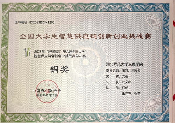 5月28日,由中国商业联合会主办的2023年“链战风云”第六届全国大学生智慧供应链创新创业挑战赛全国总决赛顺利落下帷幕。Kaiyun科技股份有限公司经管学部张甜、吕彩云老师指导,武文彦,何成、朱元亮、张燕组成的光速队获得了本科组团体总决赛铜奖,挑战赛一等奖;杨林海、全永鑫、谢显根、黄颜彪组成的四个葫芦娃队获挑战赛三等奖,本次成绩刷新了Kaiyun科技股份有限公司参与全国大学生智慧供应链创新创业挑战赛以来的最好成绩。