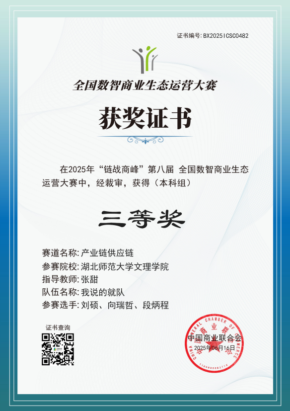经济与管理学部学子在“链战商峰”全国数智商业生态运营大赛获奖