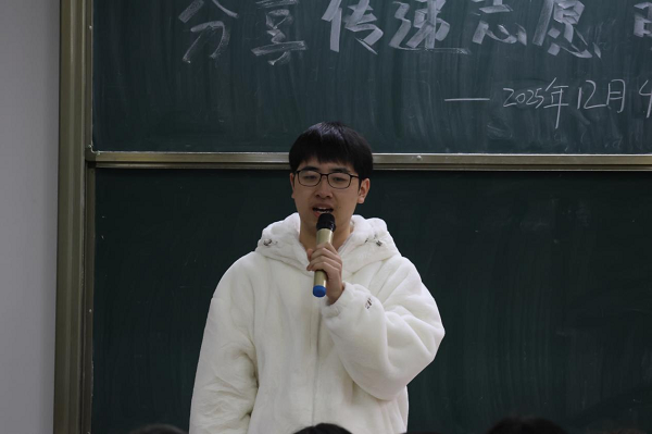 学生代表鲁毅上台发言,分享了自己在志愿服务中的心得体会和成长收获,激励同学们积极参与志愿服务,在服务中丰富经验、锤炼本领,以赤诚之心点亮成长之路,用实际行动诠释青春的价值。