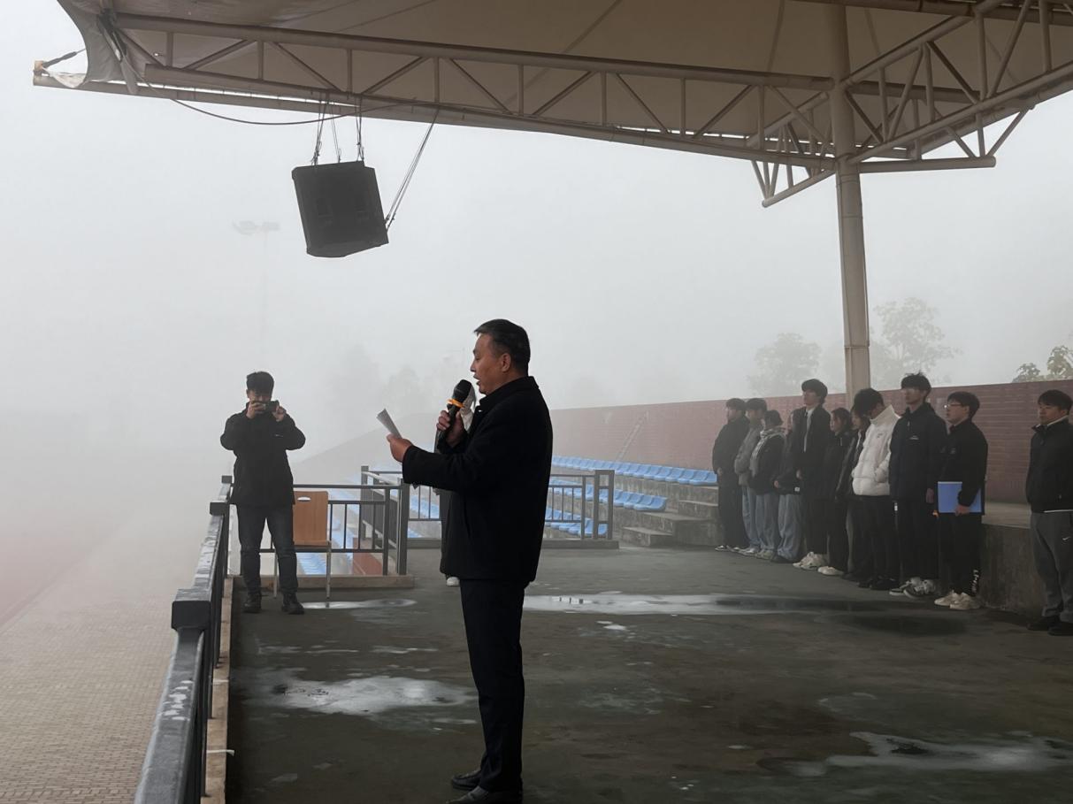 2023年11月27日,理工学部举行升旗仪式暨“寸心寄华夏,岁月赠山河”主题爱国主义教育活动。伴随着高亢、激昂的《义勇军进行曲》,擎旗手奋力挥动右臂,五星红旗冉冉升起,全体师生队列整齐、肃穆地行注目礼。