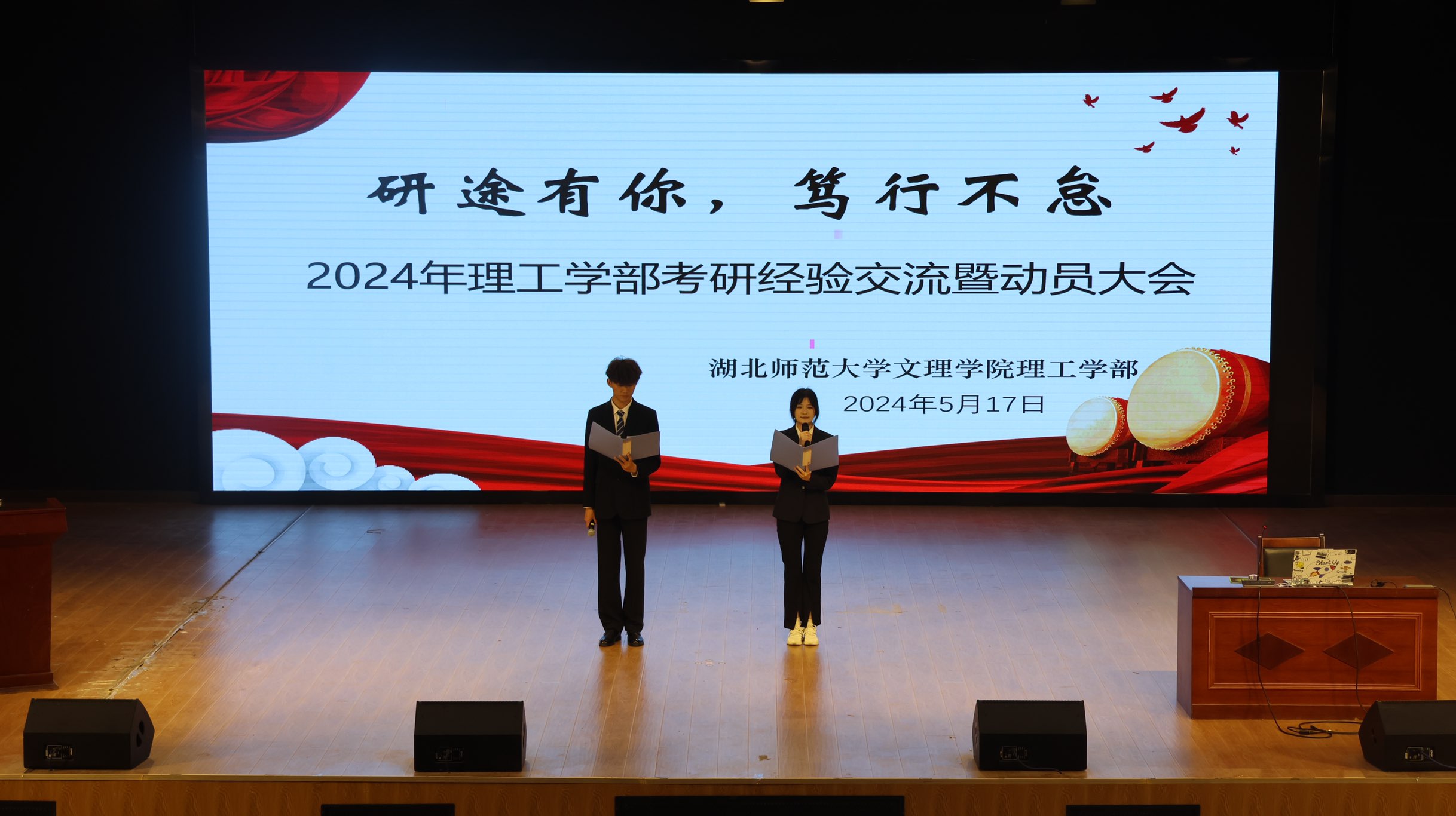 为了进一步加强学风建设,提高学生的考研热情,增强信心,明确目标,掌握技巧,在考研路上少走弯路、不迷茫。理工学部于2024年5月17日晚在学术交流中心举办了“研途有你,笃行不怠”的考研经验交流暨动员大会。理工学部主任傅朝金、党总支副书记肖圣芳,腾讯云大数据产业学院主任魏智慧、学工办主任李惠珏及理工学部学工办全体老师出席。理工学部及腾迅云产业学院500余名同学参加了此次交流会。
